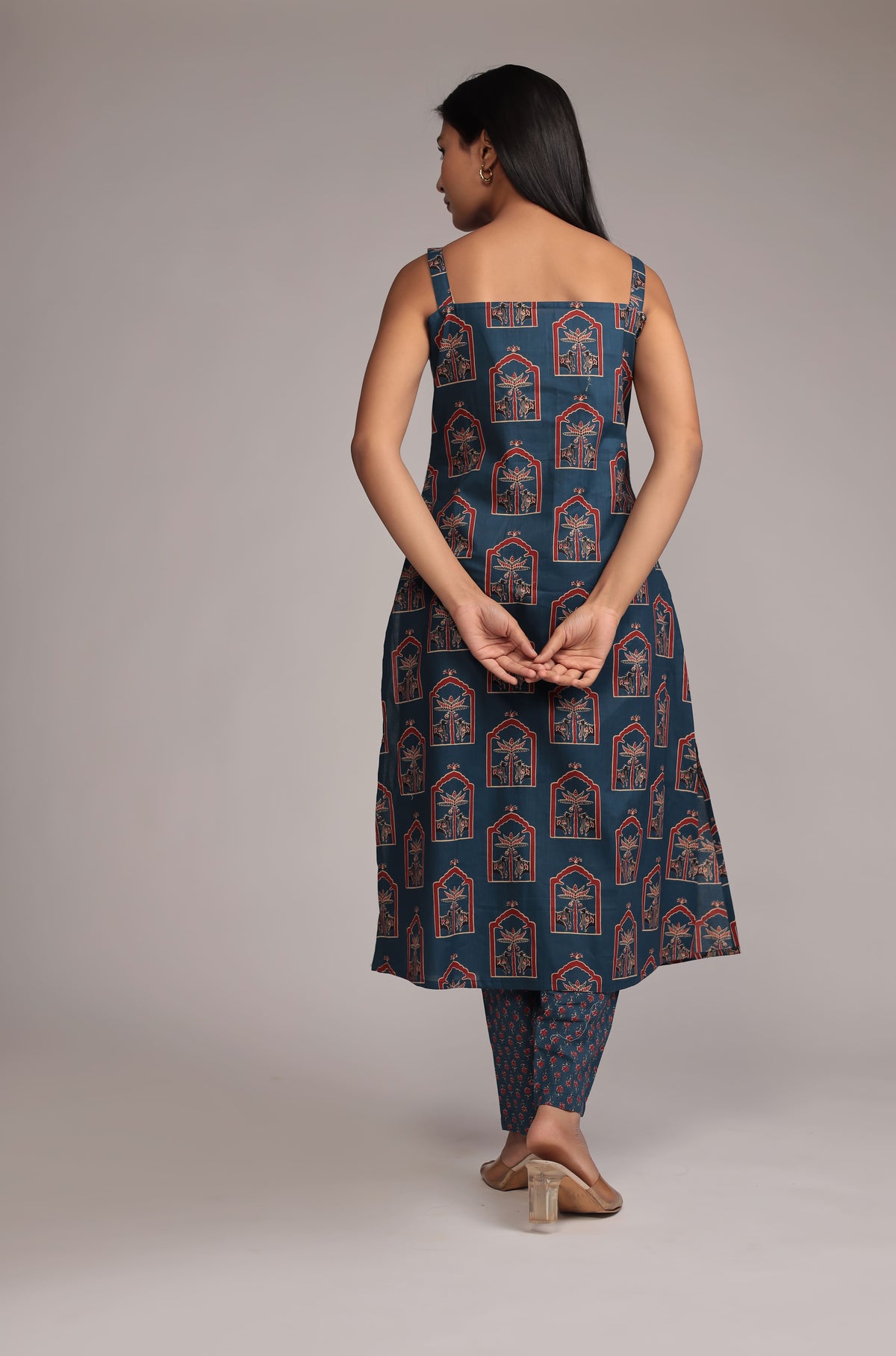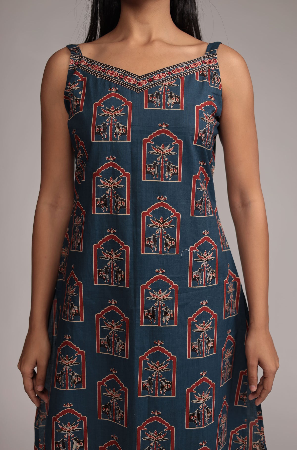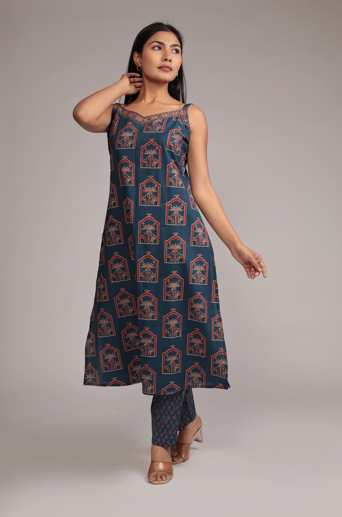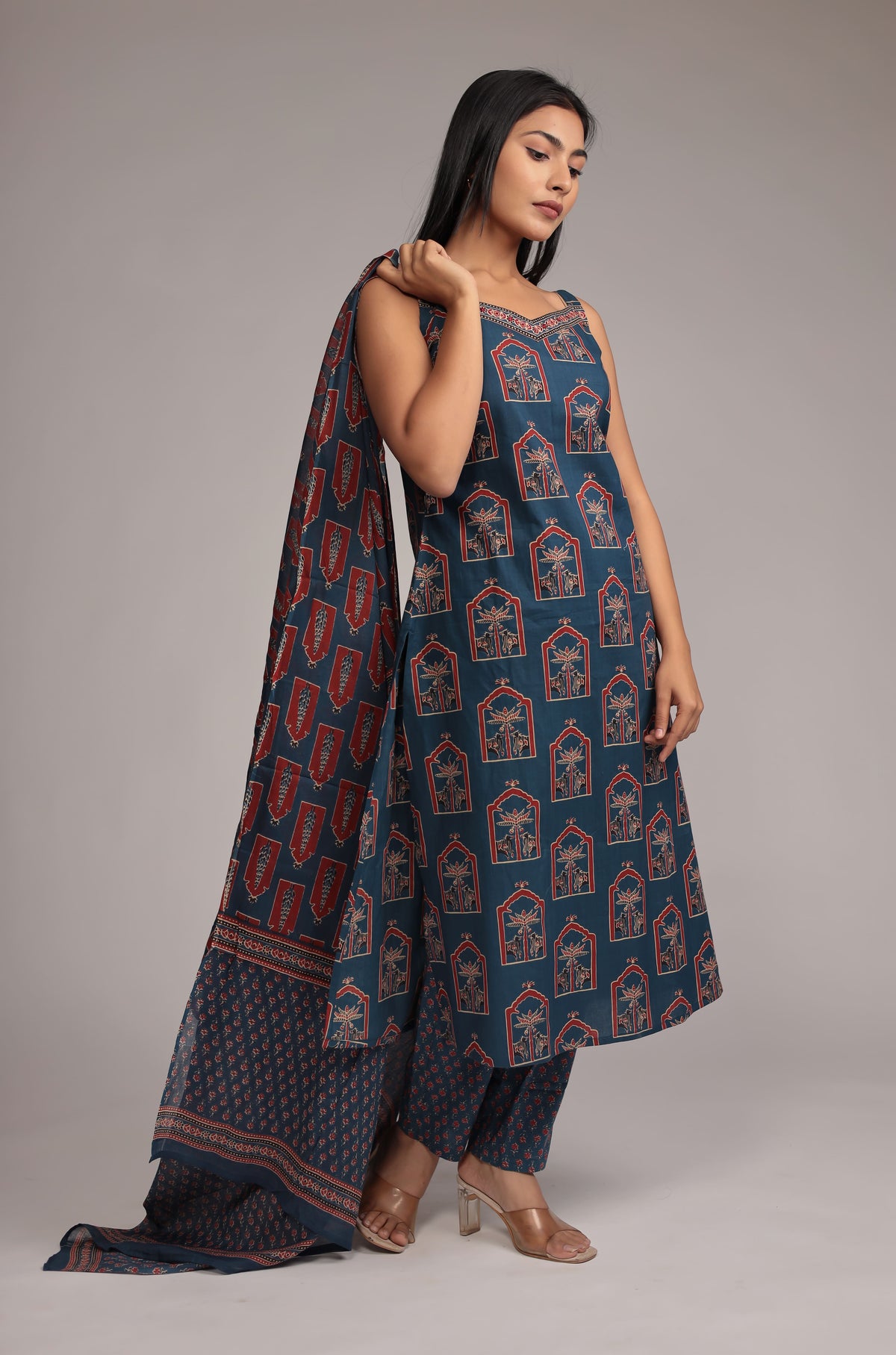 Indigo Print Dupatta set Detailed with Sequince Work on Neck