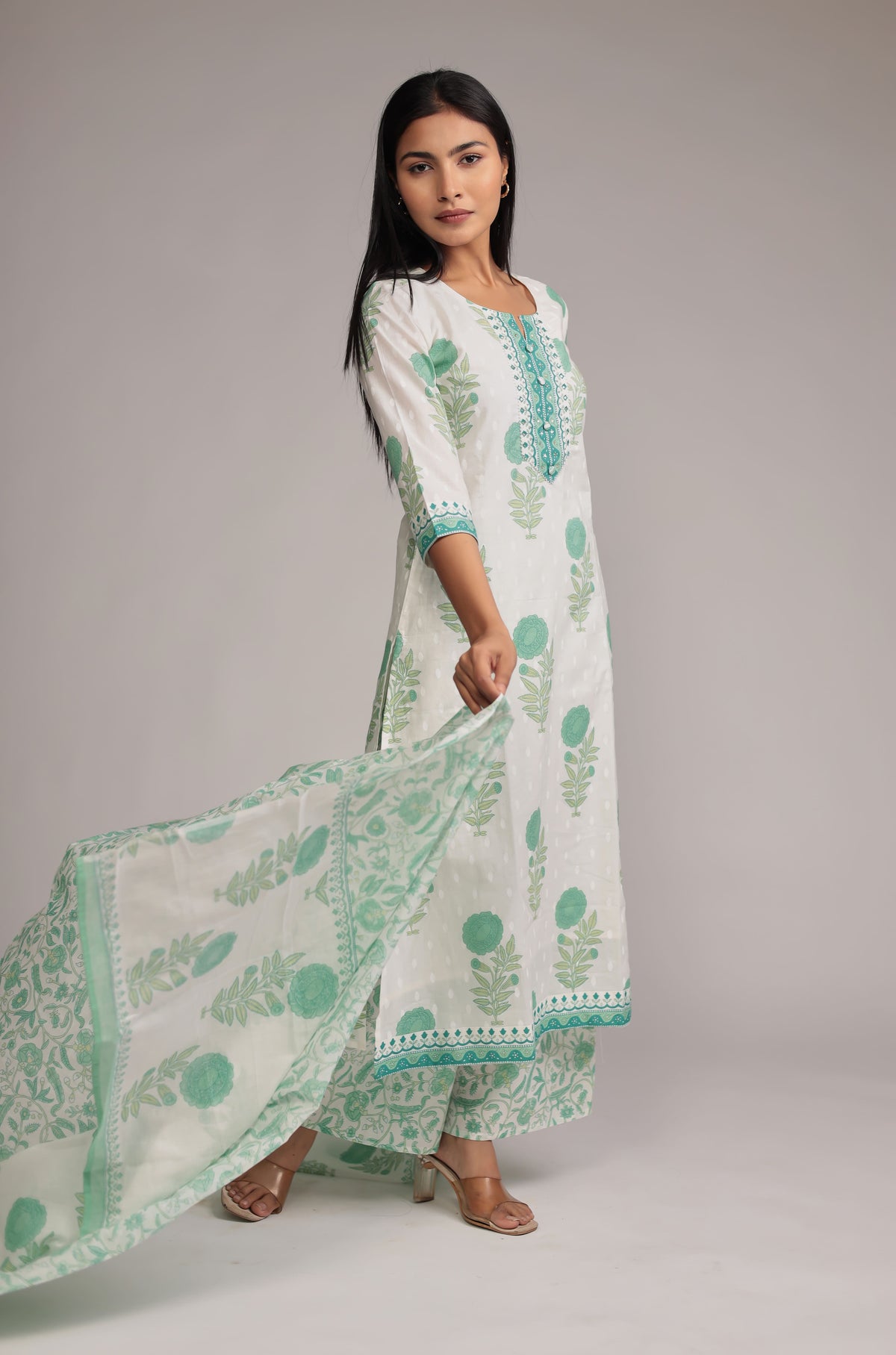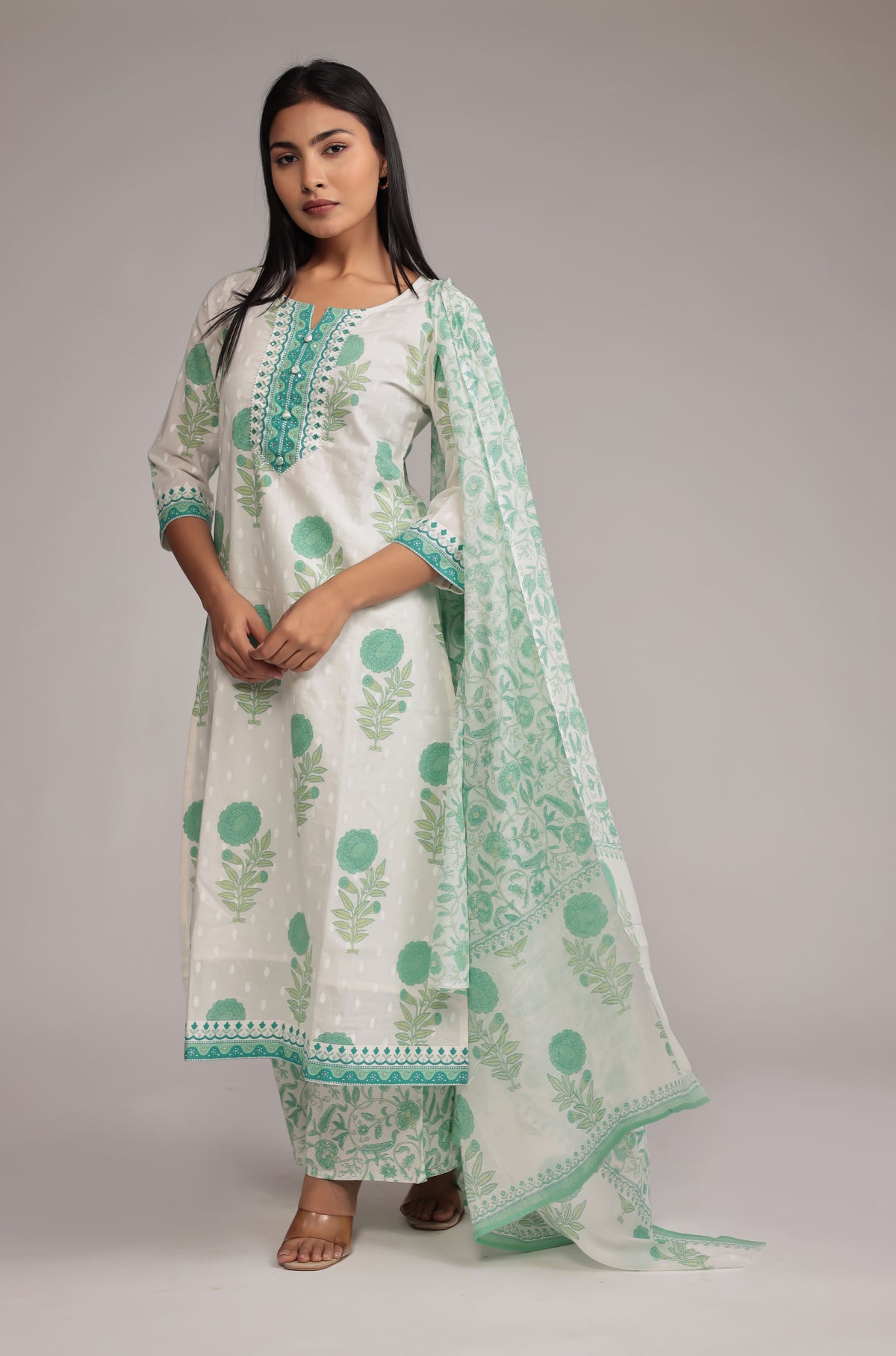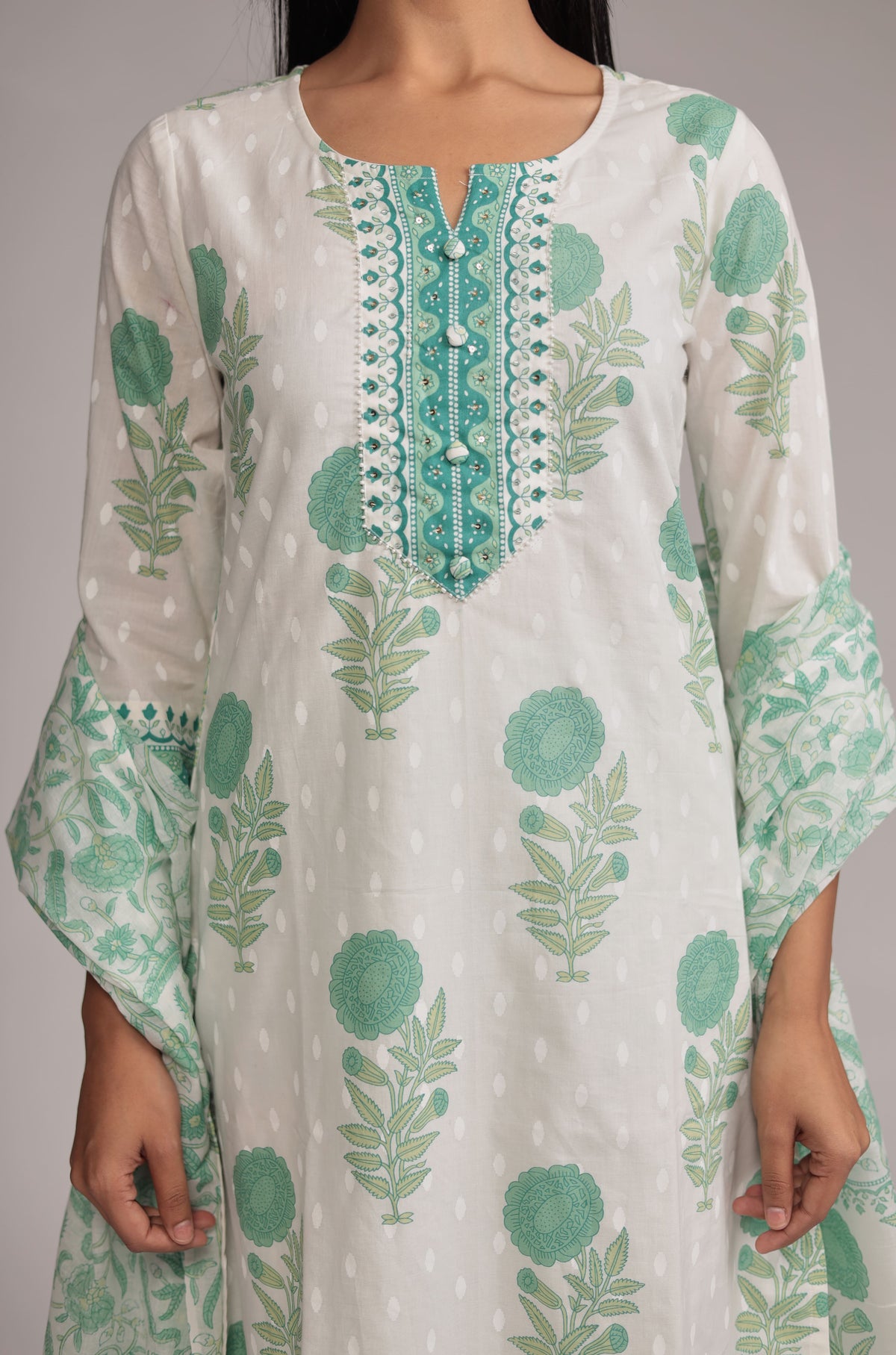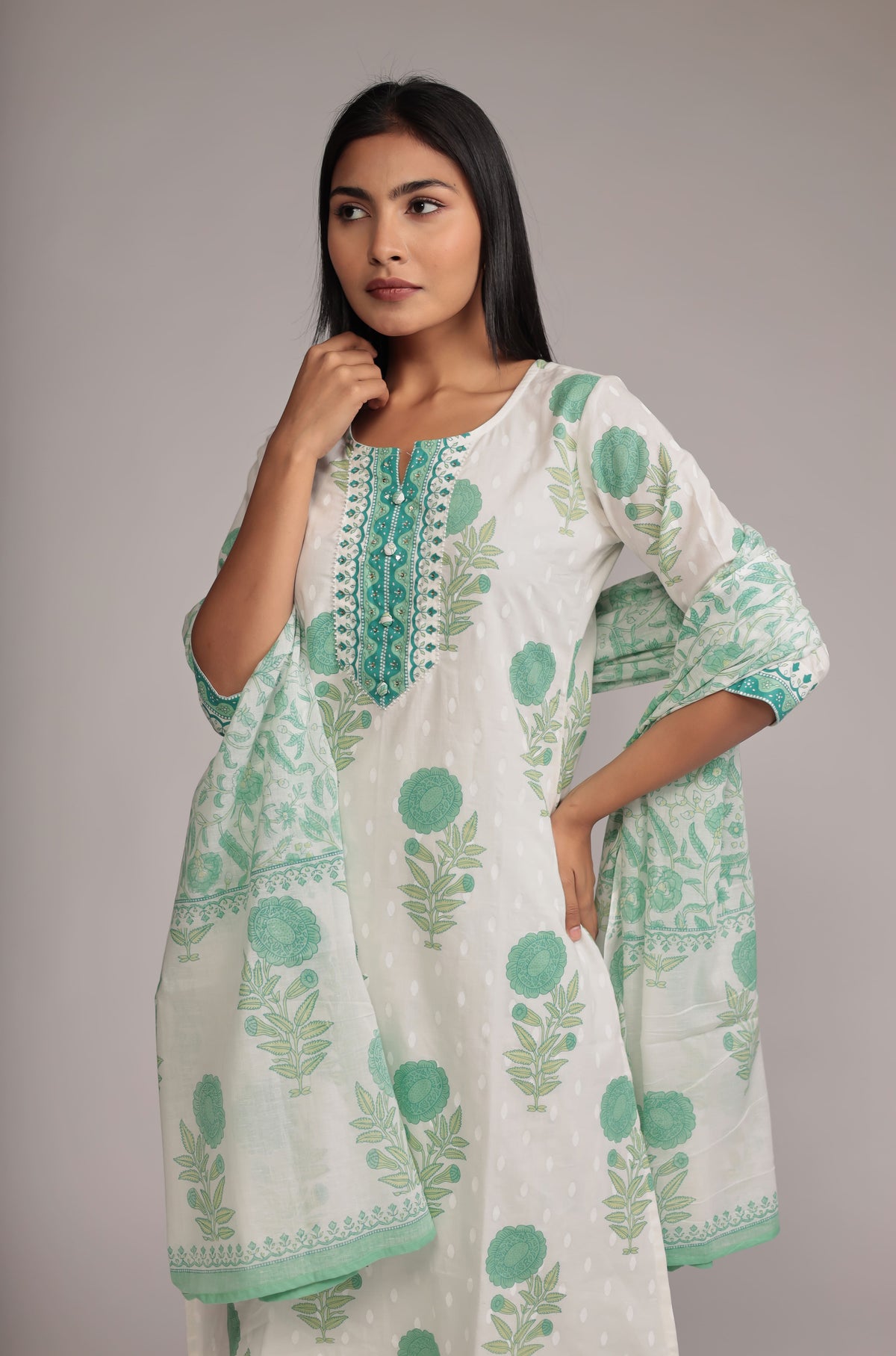 Premium Cotton Dupatta set with Hand Embroidery on Neck
