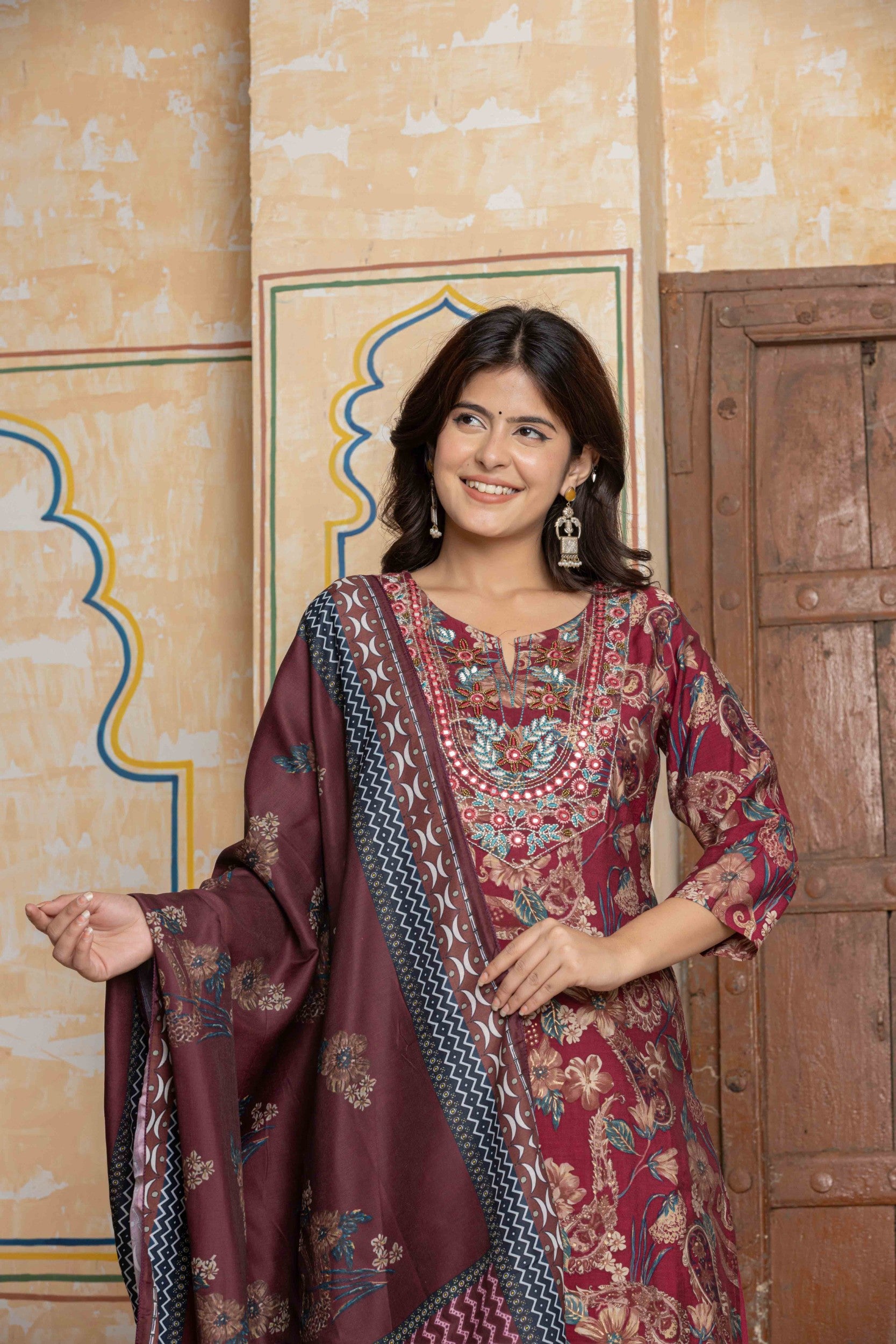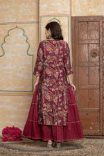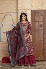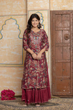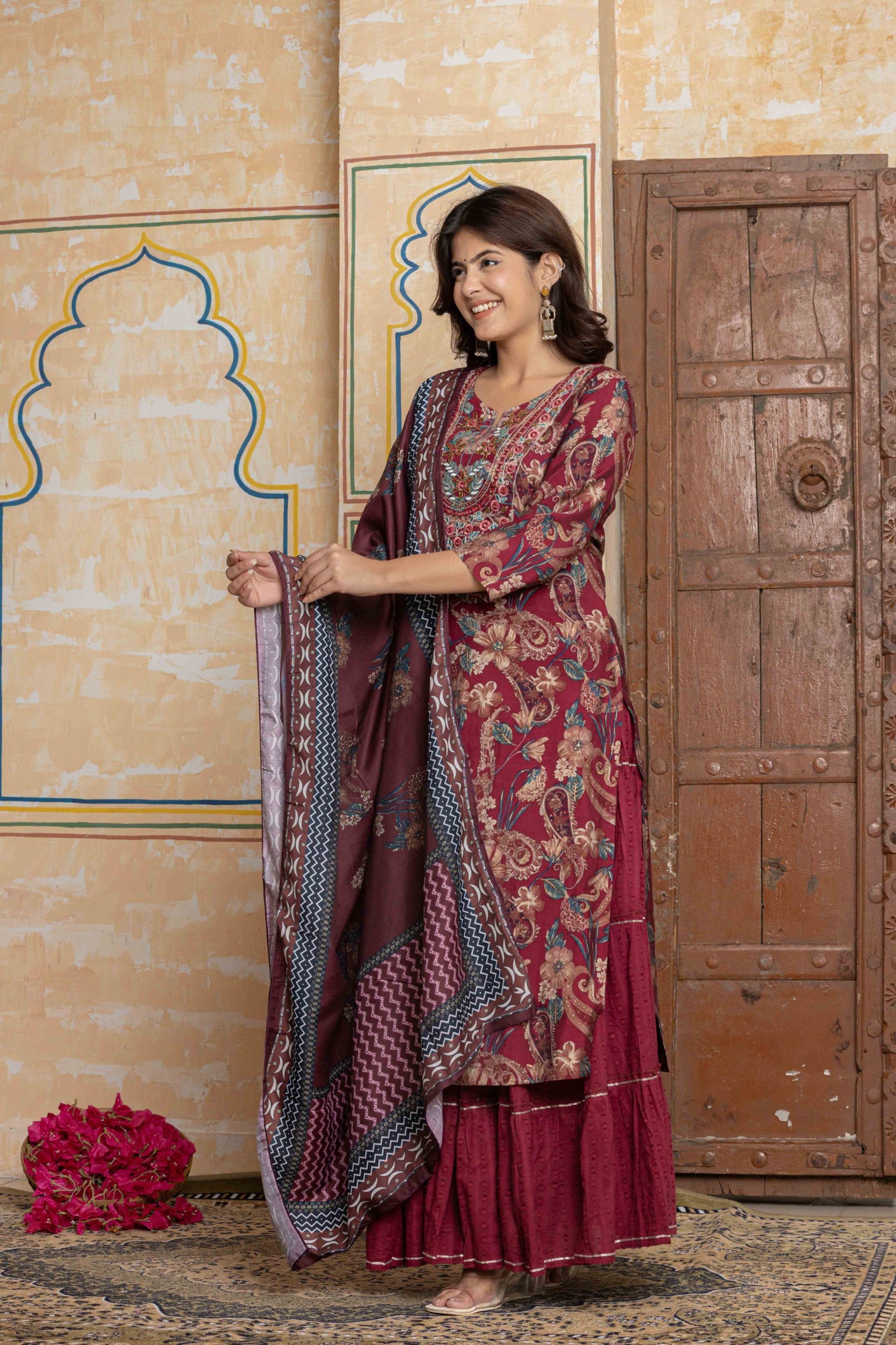 Maroon Embroidered Chanderi Silk Kurta & Skirt Set | Festive Sharara Suit