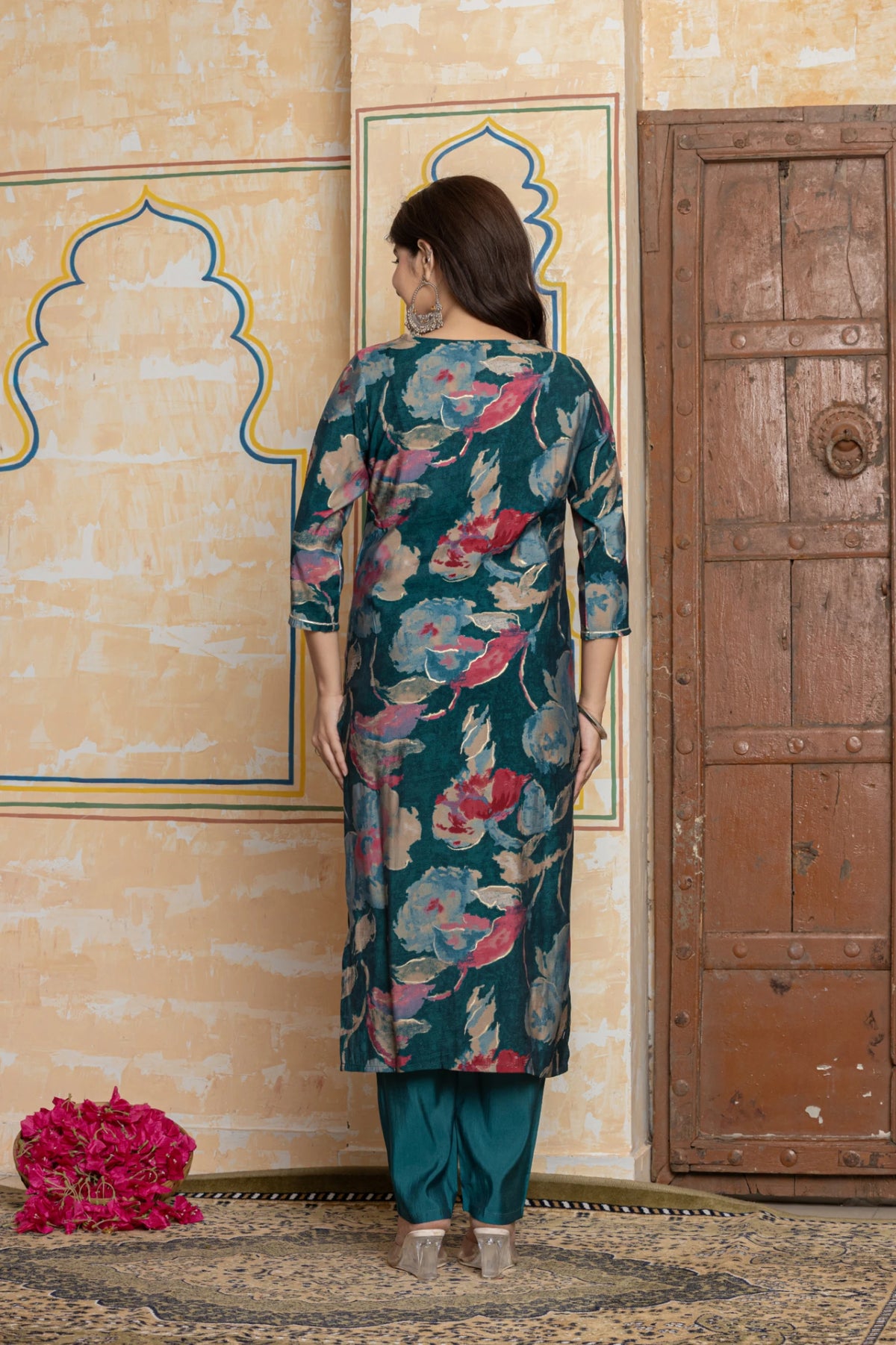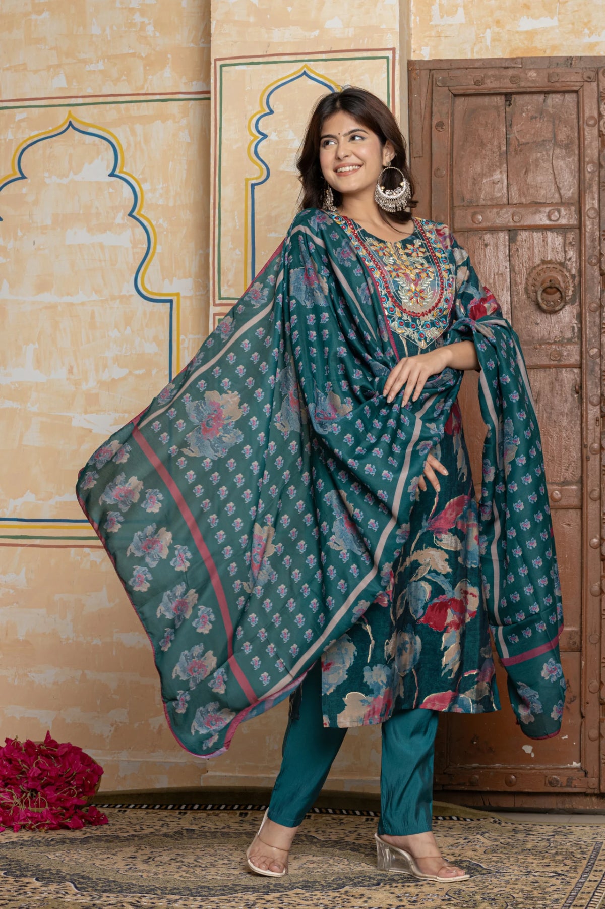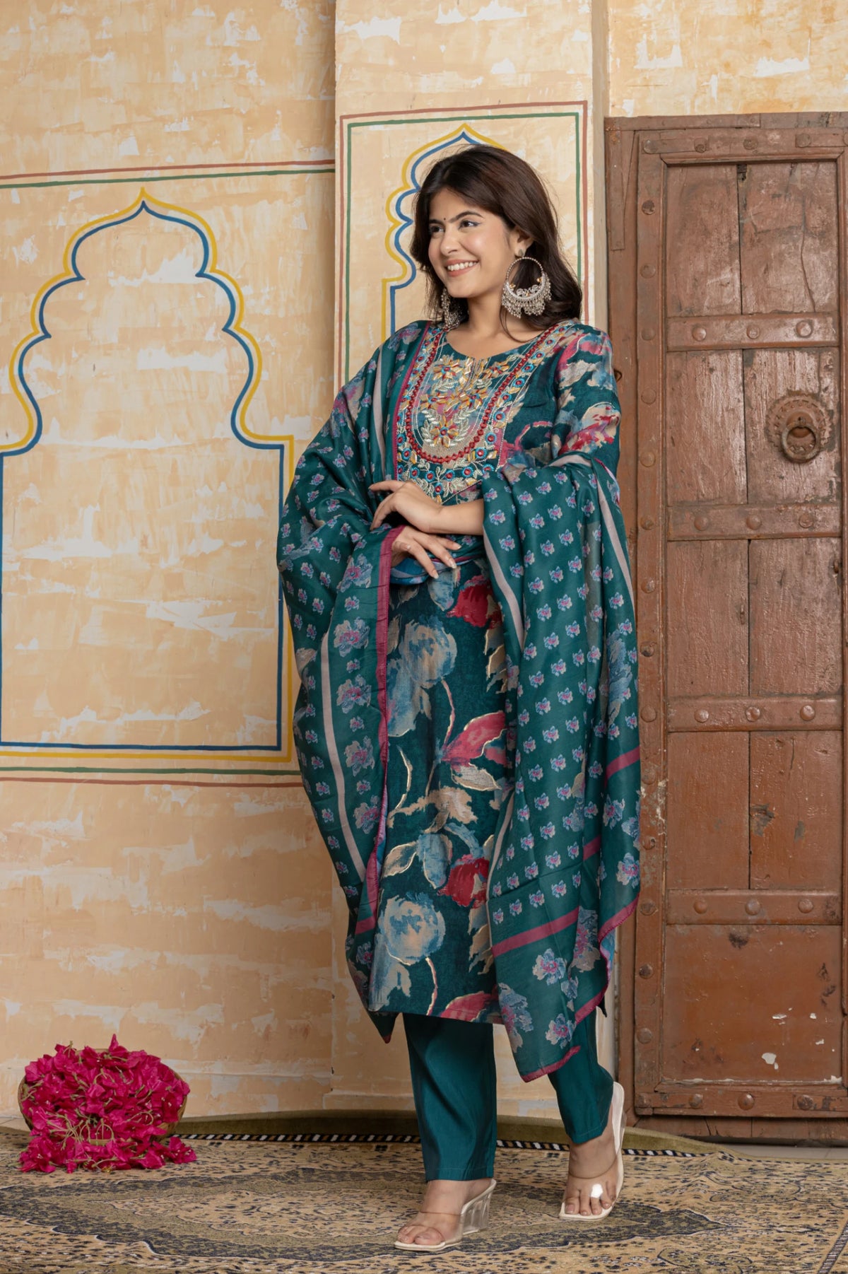 Rama Green Chanderi Suit with Gota Patti Yoke