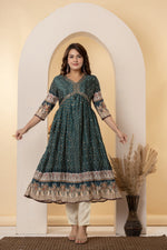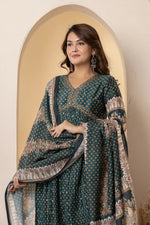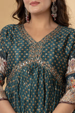 Teal Green Mirror Work Anarkali Suit Set | Festive Crushed Chinnon Kurta