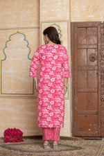 Embrace the festive spirit with this stunning Rani Pink suit set from The navra. Crafted from premium, breathable cotton, this ensemble is perfectly comfortable for all-day celebrations and cozy at-home gatherings. The kurta features a vibrant all-over floral print, creating a look of cheerful sophistication.