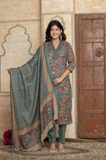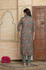 Sage Green Floral Cotton Suit Set | Hand-Embroidered