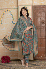 Complete 3-Piece Ensemble: Includes the straight-fit A-line kurta, coordinating printed trousers, and a full-length cotton dupatta.