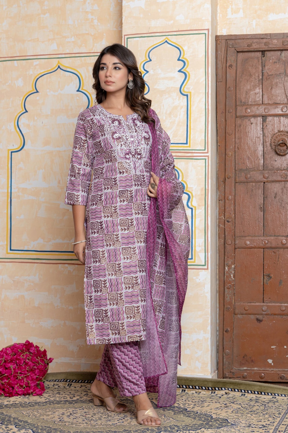 Fabric: Cotton Blend (Kurta, Pant, Dupatta)